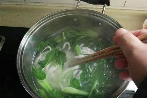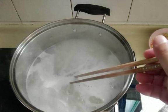 第三步:等锅里的水烧开,把面下进去,用筷子搅翻。