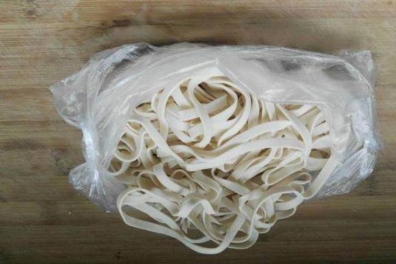 中午回家,时间有点紧张,加之是一个人吃饭,所以也就不太讲究,计划按照我自己的办法,做一顿又快又好吃的油波面。来不及自己和面,就到小区门口的压面店买了一块钱现成的九页压面。