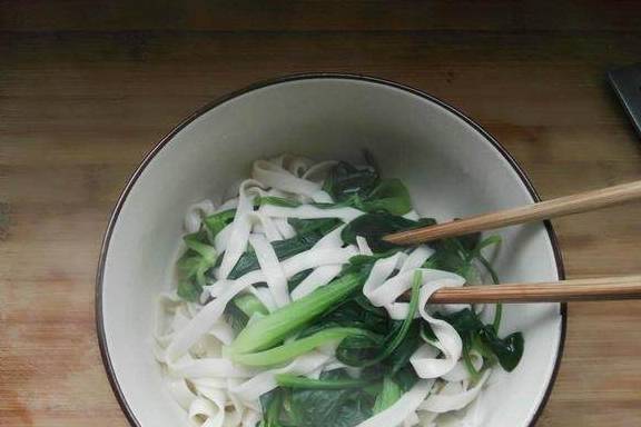 第五步:继续搅翻大约一分钟后,可以把锅里的面和菜一起捞进碗里;