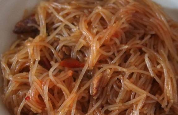 然而,过年那阵子好多店都关门了,好不容易找到一家炒粉店,却被辣椒辣得忘了味道如何。最后,耐不住我天天唠叨的老白,自己跑到超市买了一袋细米粉回家,亲自下厨做起了肉丝炒粉。