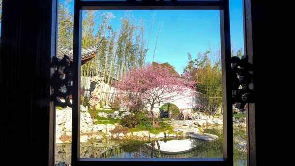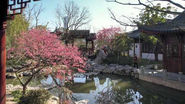 坐落于黄浦江畔卢浦大桥下的世博文化公园里,各色梅花正在盛放。
