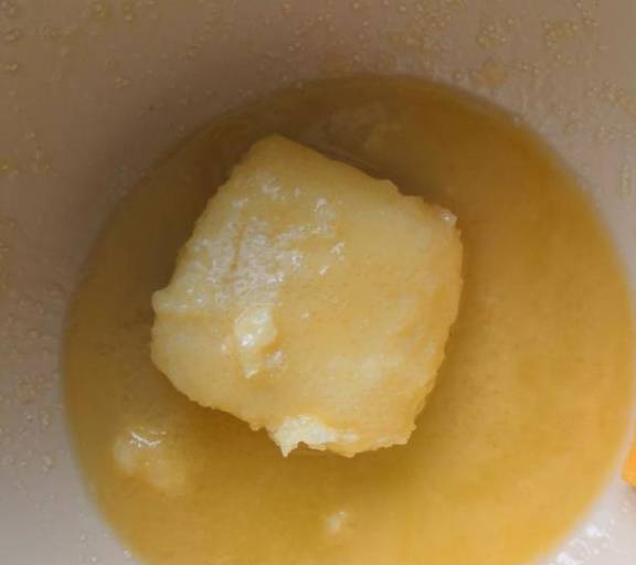 2、在黄油和砂糖的解冻过程,在碗中打烂两个鸡蛋搅拌均匀,黄油和砂糖都弄好之后,就可以将鸡蛋倒进去了,但是值得注意的是,鸡蛋液要分两次倒进去,这样更容易搅拌均匀。