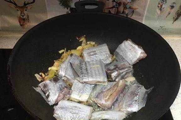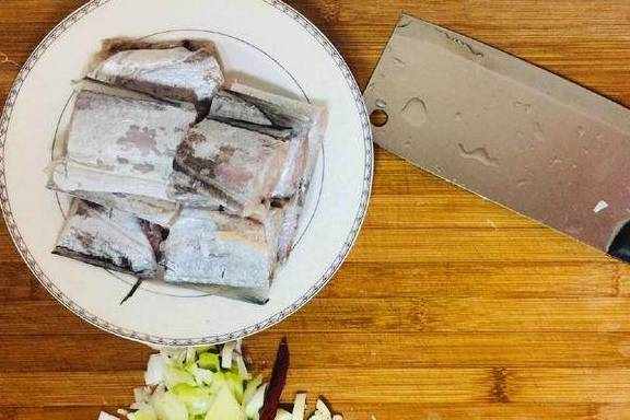 2.带鱼清洗干净,切成1厘米厚的片,用黄酒、酱油拌腌一下;