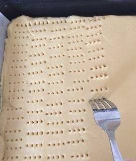 用叉子均匀的在表面叉出小孔。