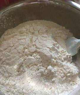 用硅胶铲拌匀,直到没有干粉。面糊非常粘,不要用手掺拌。