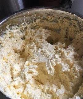 直到打发到黄油奶酪糊蓬松,颜色变淡。