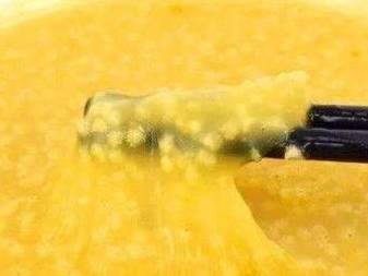 还有一种方法就是,我们先将小米清洗干净之后,然后将小米放入锅中进行煸炒,炒至小米变颜色的时候放入锅中煮,之后再将锅中加入适量的水,大火煮开之后,将炒好的小米放入锅中,煮上5分钟之后,转为小火,熬制浓稠的时候就可以关火。外婆熬小米粥有技巧,里面总会加食用面碱,小米香浓,米油多!