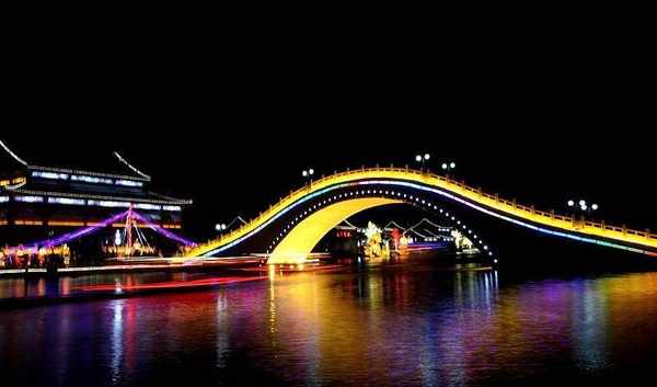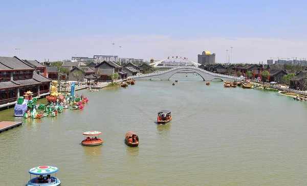 运河唐人街就是通过牌楼、码头、水巷、商业街和临水建筑打造繁荣的商业景象,呈现一幅现代版的《清明上河图》。
