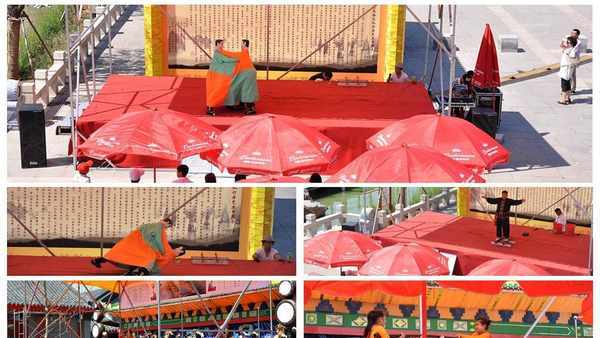 那天,吴桥杂技团分三处搭台给游人表演杂技、魔术、舞蹈,还牵出动物参与表演,吸引游人驻足观赏,也使我的相机咔嚓不断。