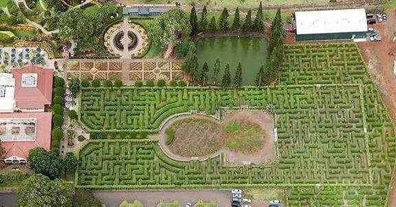 这是澳大利亚最古老和最著名的迷宫,由传统树篱迷宫、薰衣草迷宫和玫瑰迷宫三大部分组成。迷宫的“墙”高约3米,宽约2米。设计者使用超过1200个灌木丛,形成了数百米长的弯曲的通道。有意思的是,游客必须找到深藏在树篱迷宫里的四面马赛克旗,才能顺利穿越迷宫。从每年的11月到来年的6月,玫瑰迷宫是最值得游客造访的地方,因为在此期间正值花期,迷宫内种植的200多个品种的蔷薇和1200多棵玫瑰树绝对能让游客因迷醉其中而迷失方向。