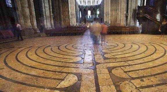 这是世界上最著名的铺筑式迷宫,修建于18世纪20年代。迷宫呈圆形,直径约12.9米,占据了教堂的整个正厅。迷宫有11圈环形通道,每圈都被小段空隙隔开。虽然现在已无从得知修筑这座迷宫最初的目的,但研究者推测,它可能是为每年的复活节舞蹈设计的场地,也可能象征着人们去教堂朝圣的道路漫长而又艰辛。它独有的中央玫瑰图案和散布四周的112个月亮形图案,已是现存极为珍贵的中世纪遗物。