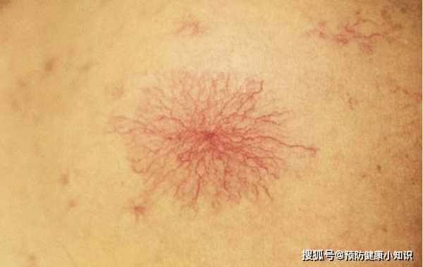 肝受損的人身上還容易出現蜘蛛痣,這是一種形似蜘蛛的小紅點,蜘蛛痣一般出現在人們的胸前和後背之上,不痛不癢很容易被人忽視,卻是肝受損的一個重要表現形式,肝臟出現問題之後,體內的一些無用及有害物質就不能及時排出體外,雌激素就是其中之一,當雌激素堆積到一定程度之後,就會刺激毛細血管,使其充血擴張,形成蜘蛛痣。