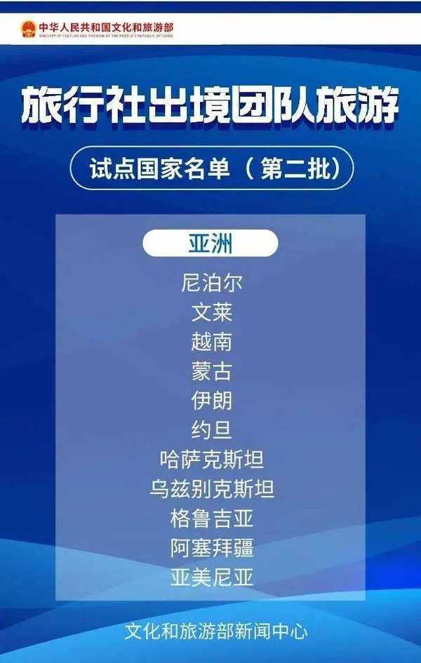 此前,文旅部曾公布第一批试点恢复出境游和相关业务的20个国家: