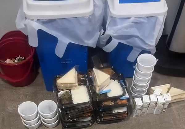 摆放在垃圾桶旁边的快餐