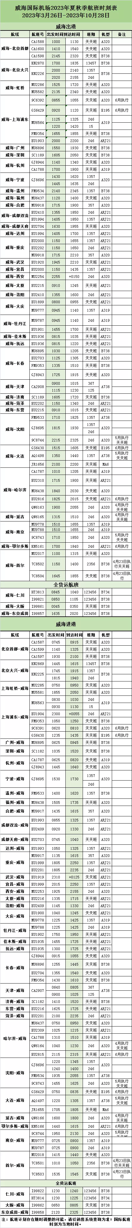 原标题:3月26日起!威海机场夏秋季航班时刻表出炉,新增航线→