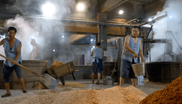 口子窖的酿造技艺传承自明清时期的“大蒸大回”工艺,从制曲、酿酒到储存,一直在秉承古法。所谓大蒸大回,是指发酵后将窖池内的糟坯配上高温润料堆积过的高粱,按一定比例搭配,分五次入甑蒸酒;出蒸后,这些渣料并未丢弃,而是加入菊花红心曲和超高温曲,续渣混蒸,循环往复,形成万年糟。