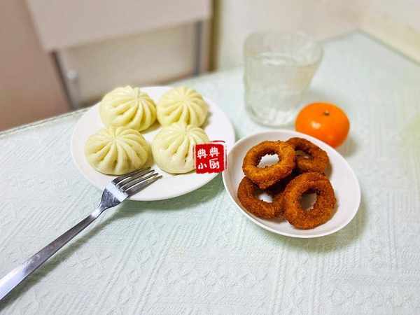 早餐二:酱肉小包子,洋葱鸡肉圈。原本我以为小朋友会喜欢这种小包子的,毕竟也是纯肉的,只是没想到她吃一口说太难吃了,让我以后还是自己在家剁肉自己包好了。呃,看来想偷懒都不行了呢。
