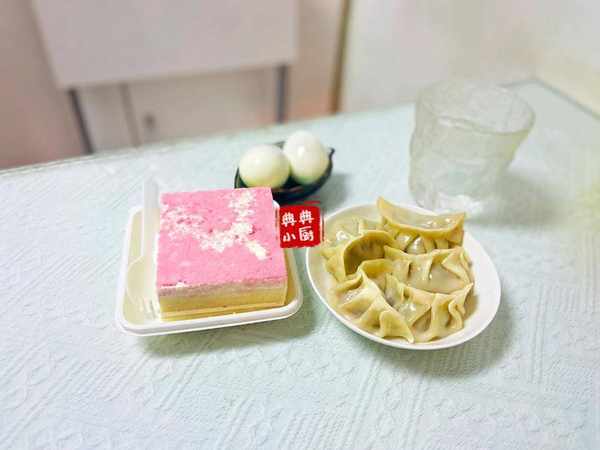 早餐三:蒸饺子,小蛋糕,鸡蛋。一直都是吃煮水饺或者煎的,这次换成蒸的,倒也挺不错的,小朋友吃的时候会蘸点生抽吃,好吧,我一直觉得大家都会蘸香醋才正常的,谁知道她喜欢蘸生抽吃。