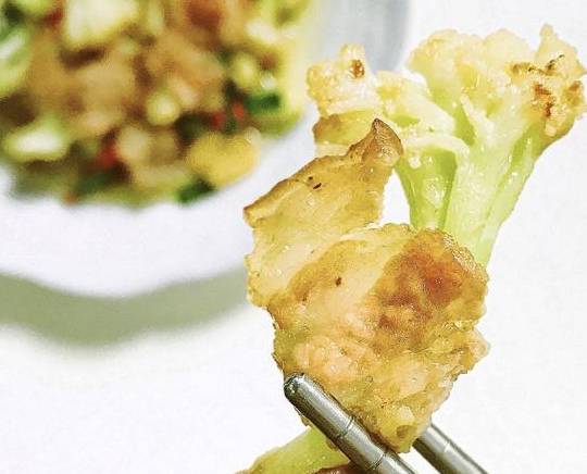 10.成品图,金黄出油的五花肉,脆脆的花菜,美味