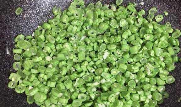 1、四季豆切成小粒来炒,更容易炒熟炒入味。