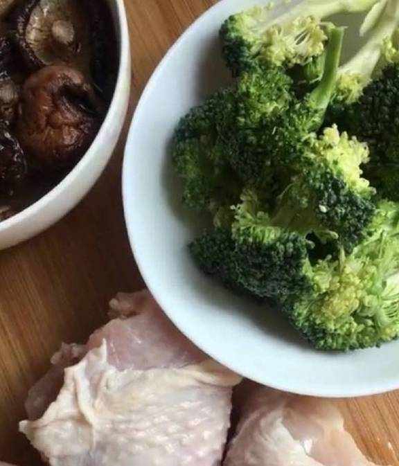 第三步:西兰花过热水,香菇提前泡发