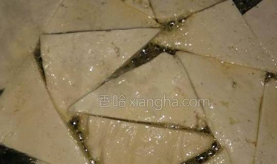 1,豆腐厚薄要切均匀,在煎的过程中用中火煎