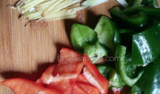 2.把青椒,红椒,葱,姜切好待用