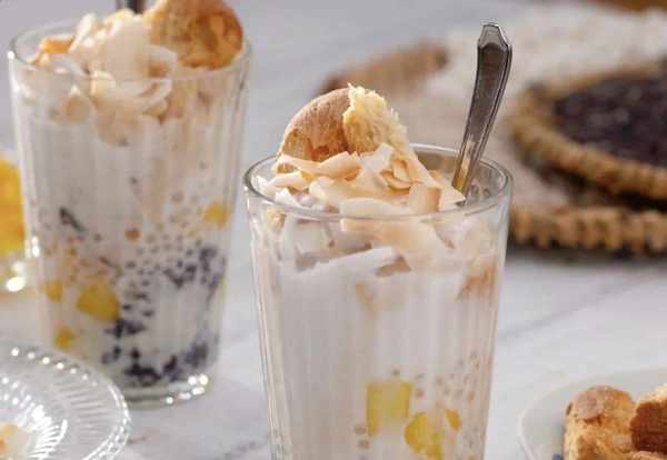 06泡鲁达泡鲁达是著名的缅甸、国外甜品。起初是在缅甸、国外等东南亚地方流行,后来逐渐传到云南德宏芒市等地方,甜中带有椰香。西米、紫米、凉虾、木瓜冻、芒果、缅甸鲜奶时尚、椰汁、碎冰块......据说正宗的泡鲁达至少有12种食材。炎炎夏日,来一杯泡鲁达,岂不美哉!