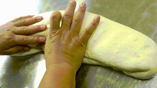 油条面变光滑以后把面翻过来,把光滑的一面朝上收口朝下,