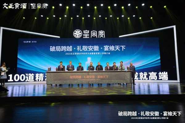 2023年3月12日,“破局跨越 礼敬安徽 宴飨天下——2023文王贡酒合作伙伴大会暨皇宫宴上市推介会”在安徽省阜阳市阜阳大剧院举行,来自省内外的800名合作伙伴及媒体代表共聚颍州,见证文王贡酒新的历史发展时刻。