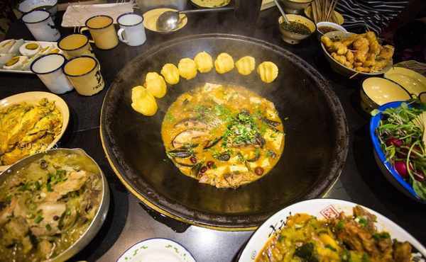东北比较出名的铁锅炖菜有“铁锅炖鹅”和“铁锅炖鸡”,但我最喜欢的是“铁锅炖鱼”。可能是因为我自己喜欢吃鱼。在我看来,东北是最有味道的,最能代表东北的饮食文化。“铁锅炖肉”是不可或缺的重要角色之一。每个人都聚集在桌子周围,并不断向其中添加想法。