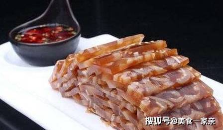 这道食材最主要的是猪皮再做好了以后,蘸上调制好的酱料,吃起来是非常美味的,不仅能够当成中餐,而且也能够当作小零食来吃,特别是在夏天的时候,这是一道下酒菜,而且猪皮是非常有营养的,满满的蛋白质,吃了以后也有美容养颜的效果。