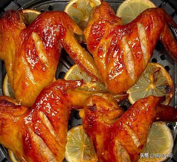 2、 空气炸锅铺一层柠檬片放鸡翅。