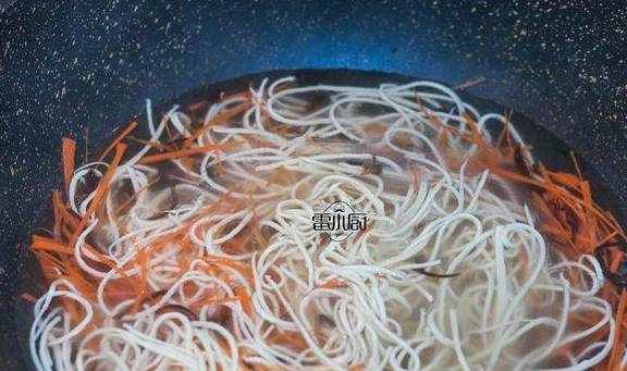 3、烧一锅水,水开之后,先放黑木耳煮两分钟,接着倒入干豆腐,胡萝卜,粉丝一起汤20秒左右,赶紧捞出,控干水分。