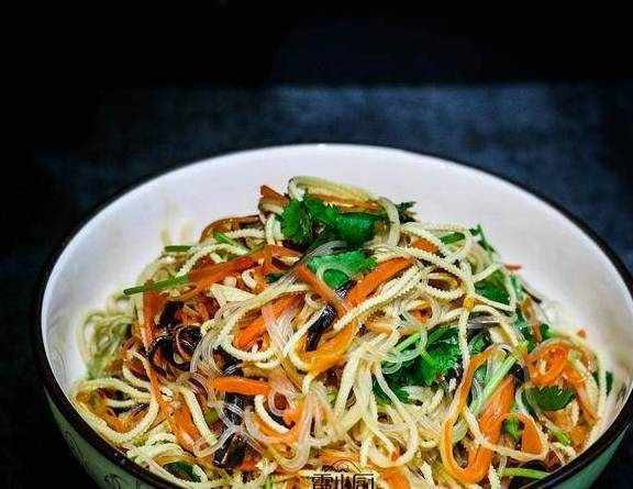 食材:干豆腐,黑木耳,胡萝卜,粉丝,蟹肉棒,大蒜,生抽,调味汁,陈醋,白糖,香油,香菜,辣椒面,食盐,熟油。