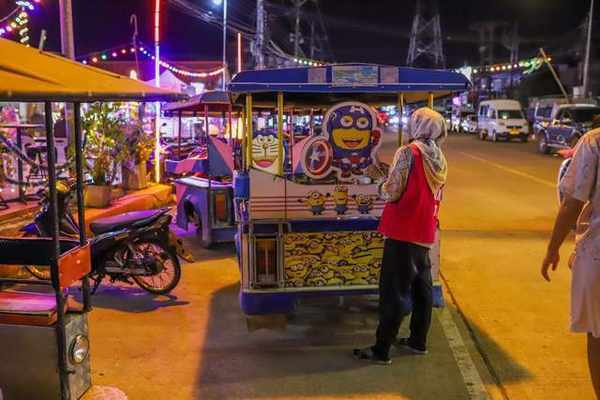 所有的tuk-tuk都是加装了彩色的夜灯,他们是按人头收费了,送回酒店是50泰侏一个人。