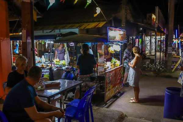 沿着海边走,作是美食一条街,可以品尝到许多传统的泰国美食,如泰国炒面、炸春卷、红咖喱、烤鱼等等。此外,还有一些当地的特色小吃,如椰子冰淇淋、芒果糯米饭等等。