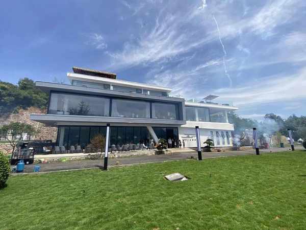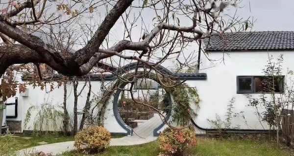从蓟州城区出发,沿着山间公路行驶不久,便来到下营镇石头营村的一座院落前。门外竹林环绕,院内杏花、玉兰、迎春花含苞待放。拱形门蔷薇环绕,八角亭立于中央,远山可见。