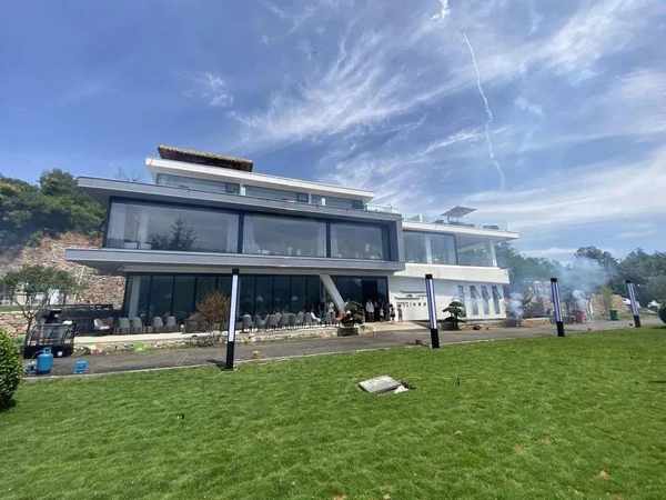 从蓟州城区出发,沿着山间公路行驶不久,便来到下营镇石头营村的一座院落前。门外竹林环绕,院内杏花、玉兰、迎春花含苞待放。拱形门蔷薇环绕,八角亭立于中央,远山可见。