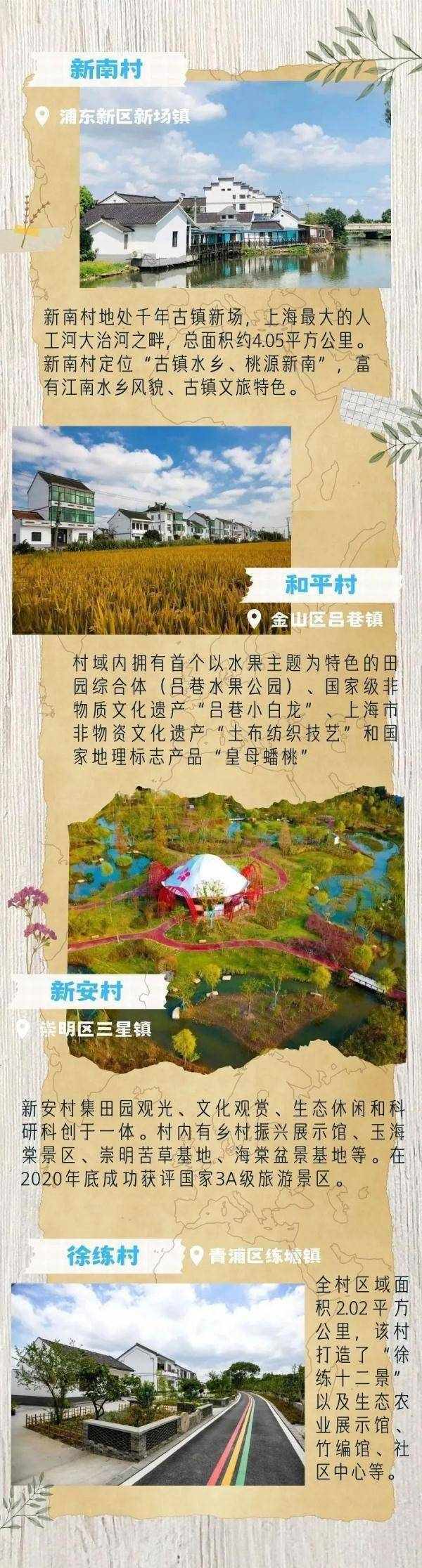 依托DB31/T299—2018《乡村民宿旅游服务质量要求》,上海浦东新区新场镇新南村、金山区吕巷镇和平村、崇明区三星镇新安村、青浦区练塘镇徐练村2022年获评中国美丽休闲乡村。