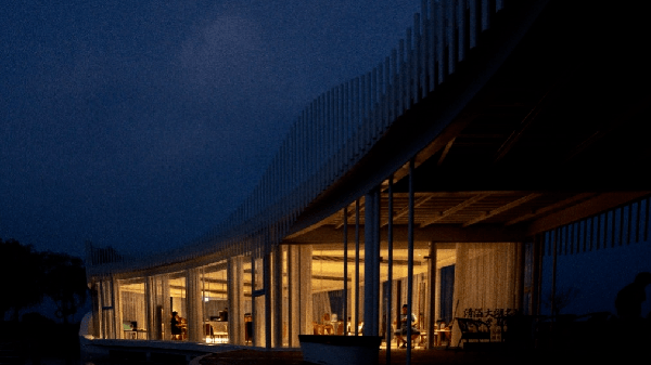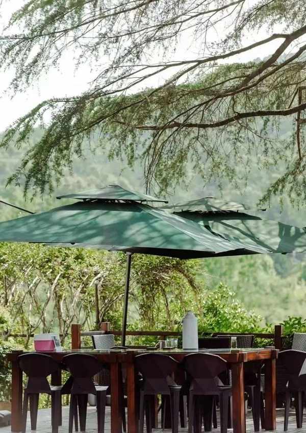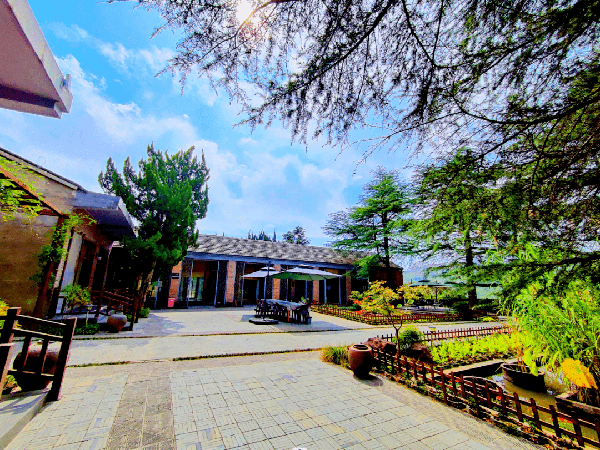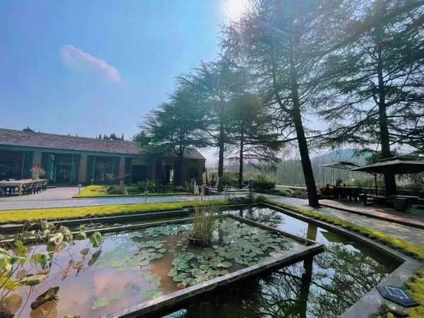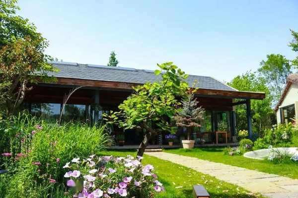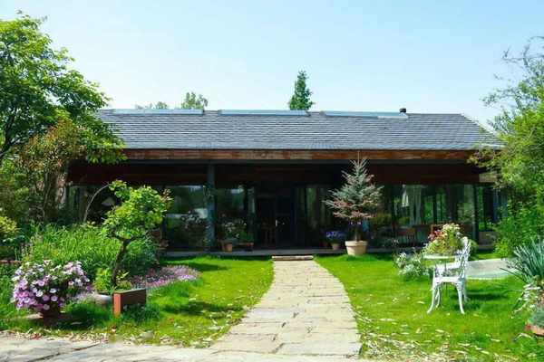 民宿餐厅,掩映在花草林木之中,将山野和田园风光引入眼帘。
