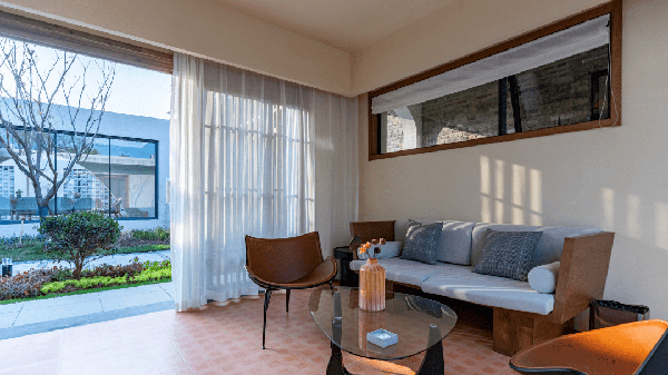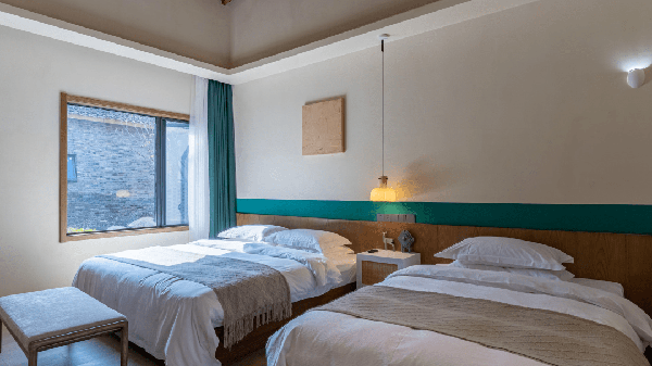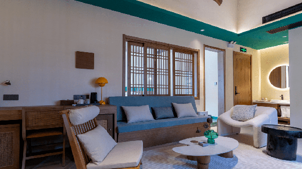 长庄荷园的民宿色调上以清新淡雅为主,设计上融合中国传统和西方现代简朴的文化内涵,营造一幅恬静淡然的荷塘小居图,让人心生喜悦。