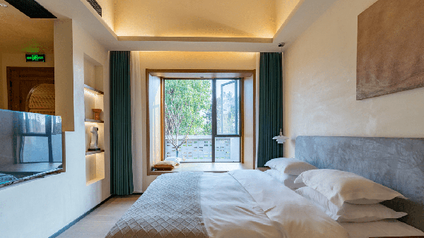 晚上躺在柔软舒适的大床时,看窗外月明星稀,闻窗外虫鸣,听窗外晰晰雨滴......无论什么,你都能看见岁月静好的模样。