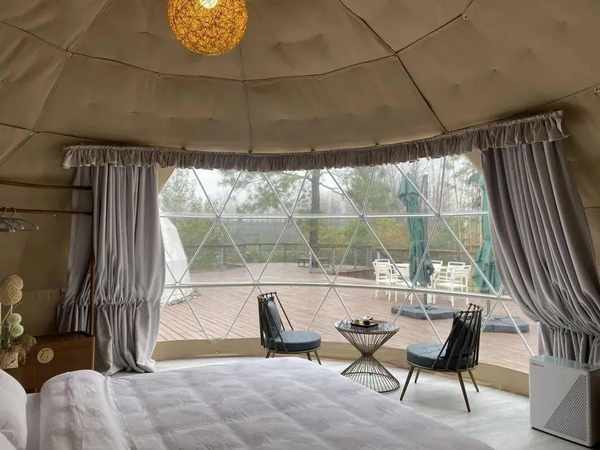 这里有屋舍、房车、帐篷露营等多种特色住宿,当夜幕降临,躺在星空帐篷里,抬首便是满天繁星,这大概就是岁月静好的模样。