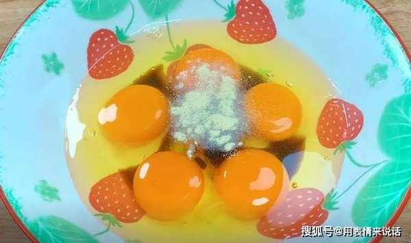 ③接着准备五个鸡蛋,放在碗中,加一勺食盐,一小胡椒盐,搅拌调味。