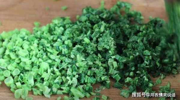 ③然后将香椿切碎,放在肉末中搅拌均匀,就变成了肉末香椿馅料。