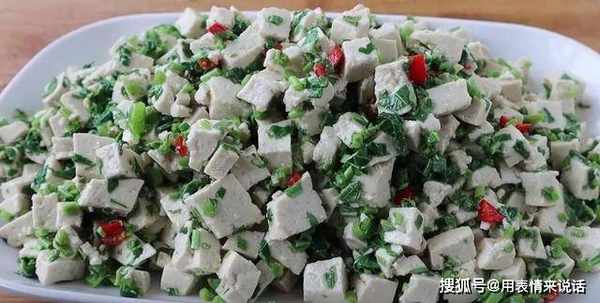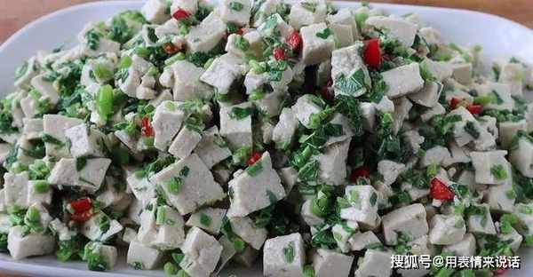 ⑦这道香椿拌豆腐鲜嫩可口,鲜美入味。可以止咳化痰,味道非常的清淡,适合老人小孩吃。