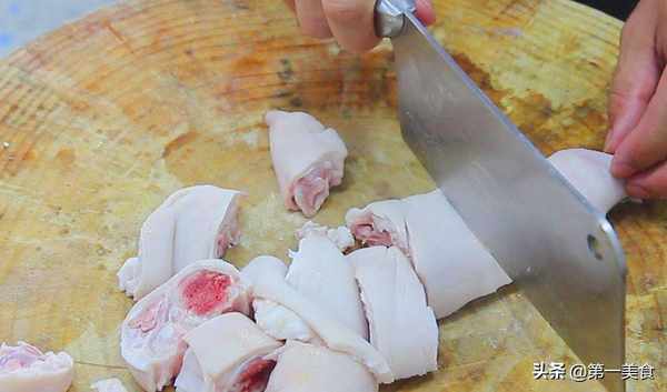 准备一个猪蹄。清洗后,将其切成小块待用。这些碎片不应该太大。它应该很容易烹饪,稍后品尝。