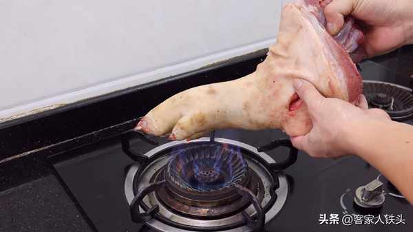第一步:首先准备一只猪脚。前脚会更肉。今天我们去市场很晚,没有买前脚。所以后退一步。首先用火烤猪脚,烧掉猪脚表面的一些细毛。这一步也可以请摊主帮忙。我们还需要用刀清洗烧过的猪脚,这样它就不会有异味。