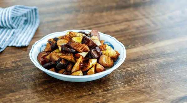 9 等水干了,放入配菜翻炒均匀,然后调入盐、糖和味精,在烹入一点点醋,翻匀后收汁即可。